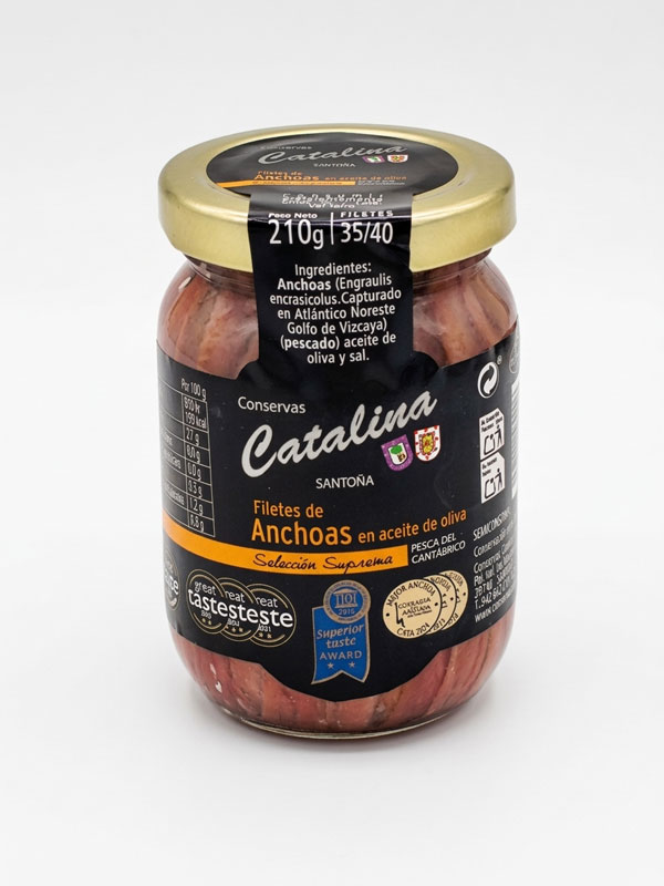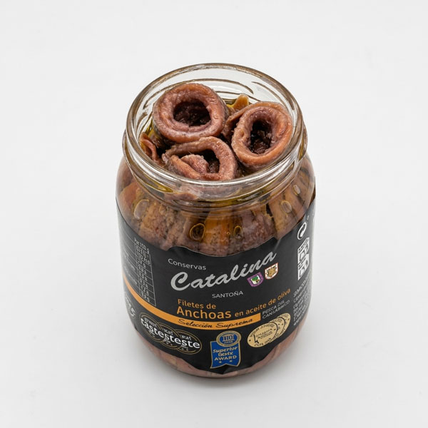 Para alcanzar su característico bouquet, estas anchoas se someten a una maduración en salazón de más de 12 meses. Este reposo prolongado otorga a la carne un color rojizo profundo y una textura carnosa pero fundente. Conservadas en un aceite de oliva de alta gama que actúa como el hilo conductor de su sabor, ofrecen un aroma equilibrado y una persistencia en boca reservada solo para los productos de etiqueta dorada.