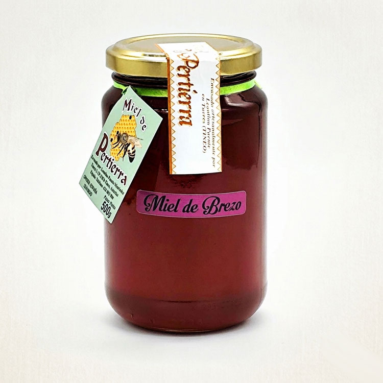 Descubre la auténtica Miel de Brezo De Pertierra, presentada en Tarro Cristal de 500 g., una joya 100% natural recolectada artesanalmente en los montes del occidente asturiano, en el entorno de Tineo.