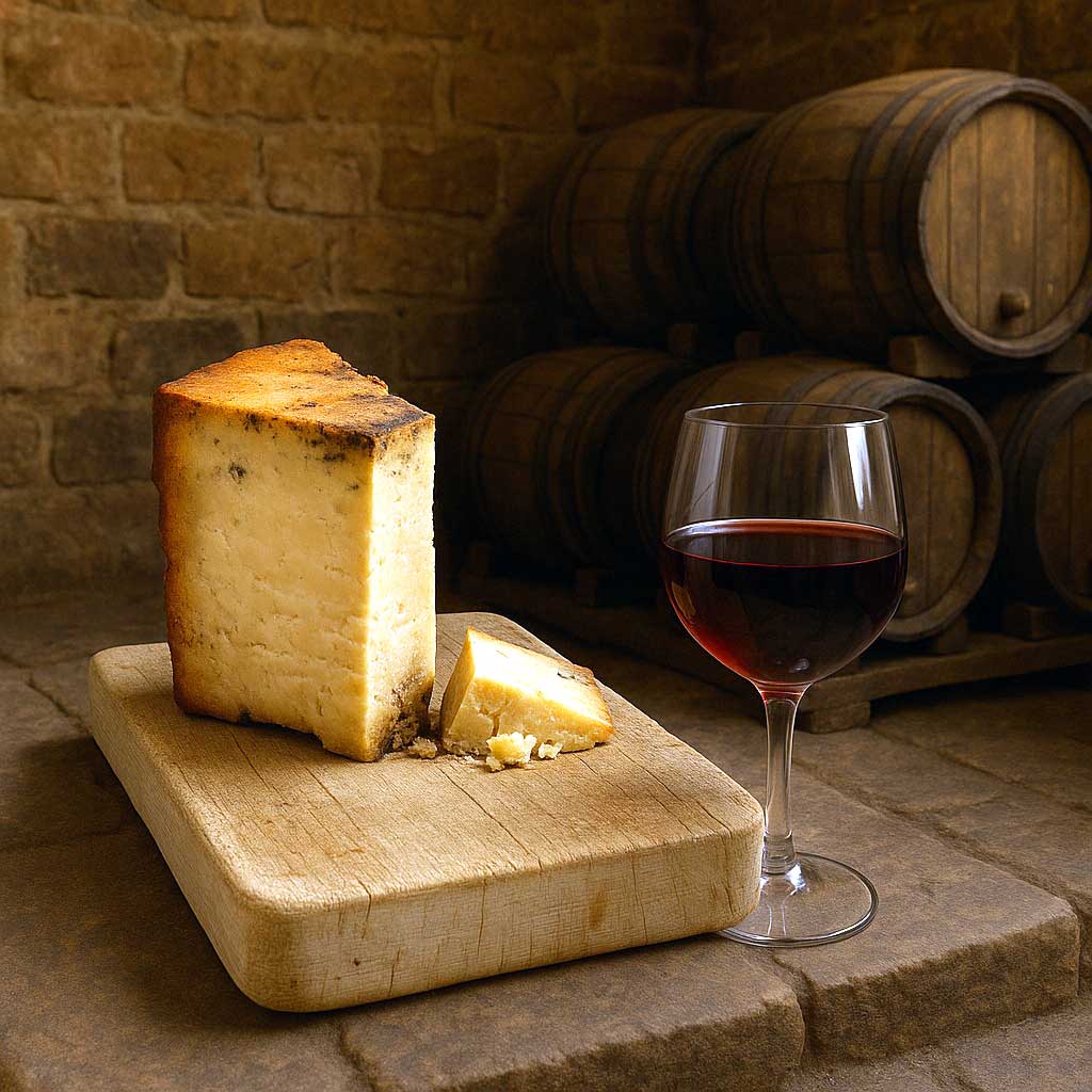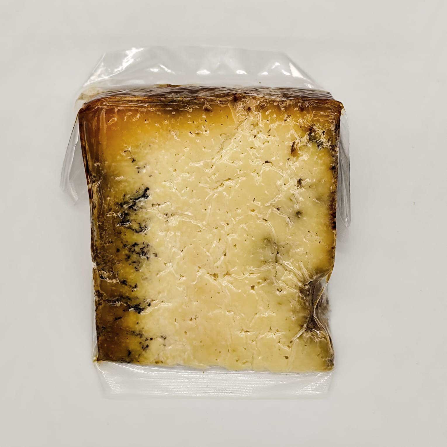 Perfil de Sabor y Textura Su corteza fina, con tonos azulados, rojizos y verdosos, protege una pasta firme y cremosa. En boca, despliega un sabor intenso y equilibrado, con claras notas ahumadas, un toque ligeramente picante y un persistente retrogusto a avellana y hierbas silvestres.